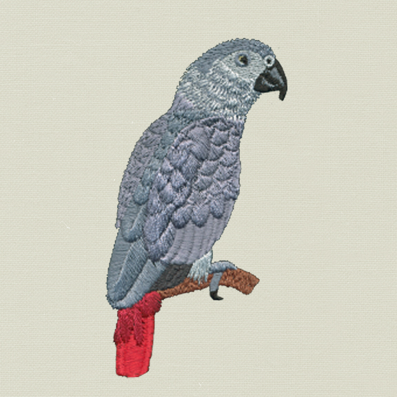 These are the largest parrots of the African Rainforest, and come in 2 species. The Congo is the larger of the two species and it is usually a much lighter grey, with a bright red tail and a black beak. The Timneh, in contrast, is smaller, dark grey with a maroon tail, and its upper beak is largely horn colored instead of black. Both species are extremely intelligent birds with an incredible capacity to both speak and understand human language.