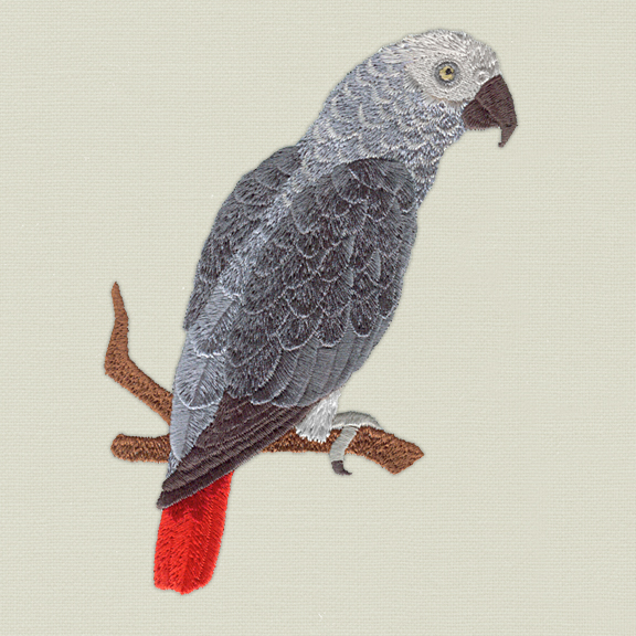 These are the largest parrots of the African Rainforest, and come in 2 species. The Congo is the larger of the two species and it is usually a much lighter grey, with a bright red tail and a black beak. The Timneh, in contrast, is smaller, dark grey with a maroon tail, and its upper beak is largely horn colored instead of black. Both species are extremely intelligent birds with an incredible capacity to both speak and understand human language.